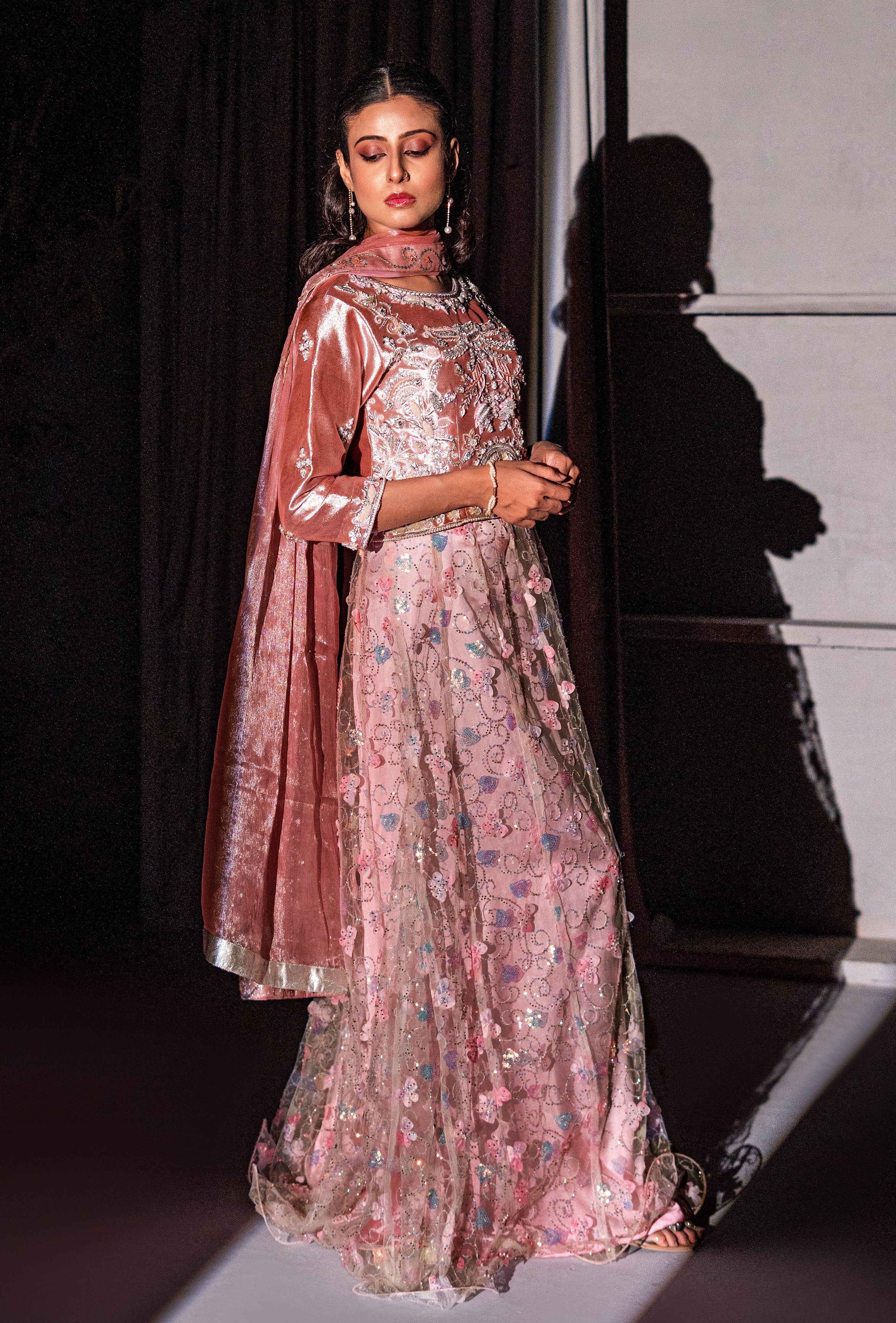 Style Tip: Pair this lehenga with statement jewellery and a bold lip color to elevate its glamour and sophistication.